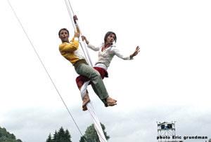 Par chez nous, « Gavéo » peut se traduire par « très très haut ». C’est à peu près la hauteur qu’atteignent nos objets de jonglerie (massues et diabolos) lorsqu’on leur demande. Priam et Frédéric se connaissent depuis leur rencontre en école d’ingénieur (2001) et jonglent ensemble depuis cette époque. Ils se consacrent chacun aux arts du spectacle depuis 2004, avec notamment des numéros de cabaret respectivement aux diabolos et aux massues.