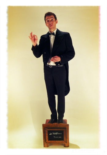 Le siffleur parcourt le monde pour interpréter les plus beaux airs de la musique classique: Bizet, Schubert, Rossini ou Mozart, accompagné d'un orchestre philharmonique de poche qui tient dans son meuble-scène. Quand il ne siffle pas, le siffleur parle, d'ailleurs il parle autant qu'il siffle car il doit reposer ses labiales. Quand le siffleur parle il est drôle mais il ne le sait pas.