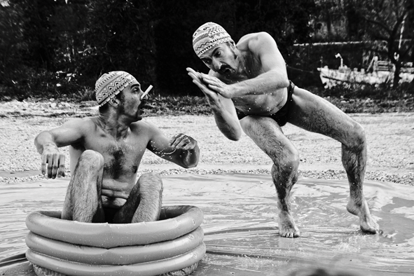 Ce ne sont pas des antiféministes : mais à l'heure où l'on parle de parité, est-il possible pour les hommes de pratiquer une discipline réservée aux femmes ?Cette exhibition normalement codifiée ne peut pas se dérouler comme convenu. De gouttelettes en remous, d'éclaboussures en glissades, la maladresse se fait une invitée de marque pour le plaisir de chacun.