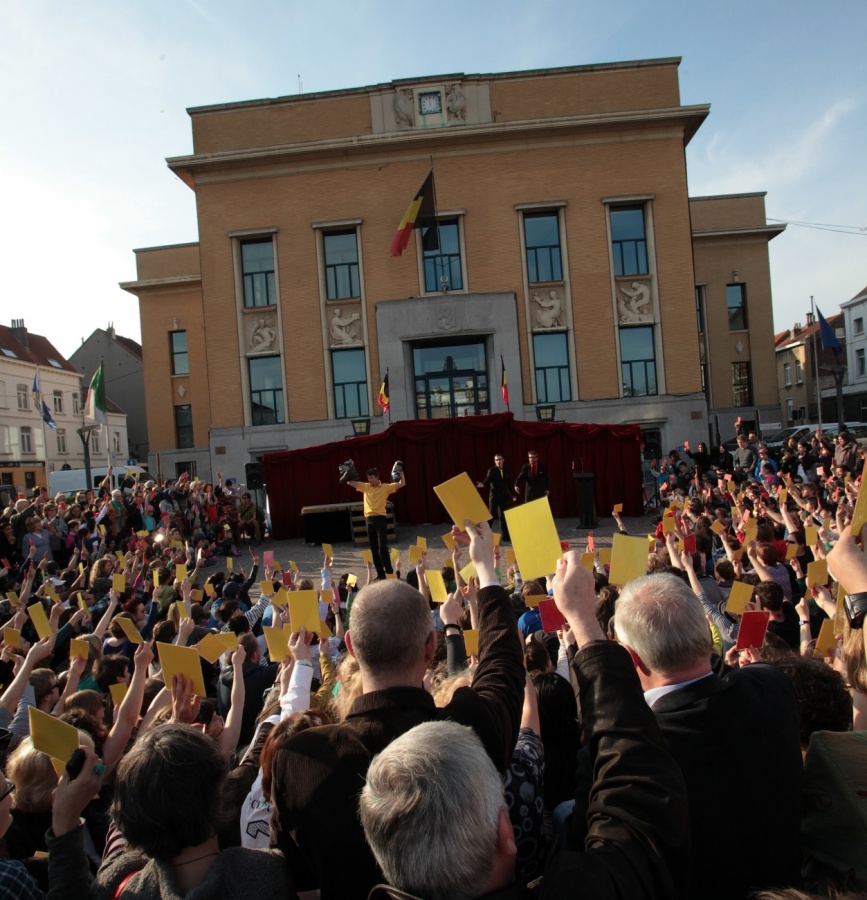 Un spectacle très Belge et donc très démocratique... Les spectateurs ont le droit et le devoir de voter pour décider de la forme et du contenu de ce qu'ils regardent. Au premier abord c'est un cabaret dans lequel tout semble possible : un numéro de jonglage avec de la vaisselle en porcelaine, un numéro de claquettes en chaussures de ski ou encore un saut de 4m de hauteur dans une piscine de 30 cm de profondeur.