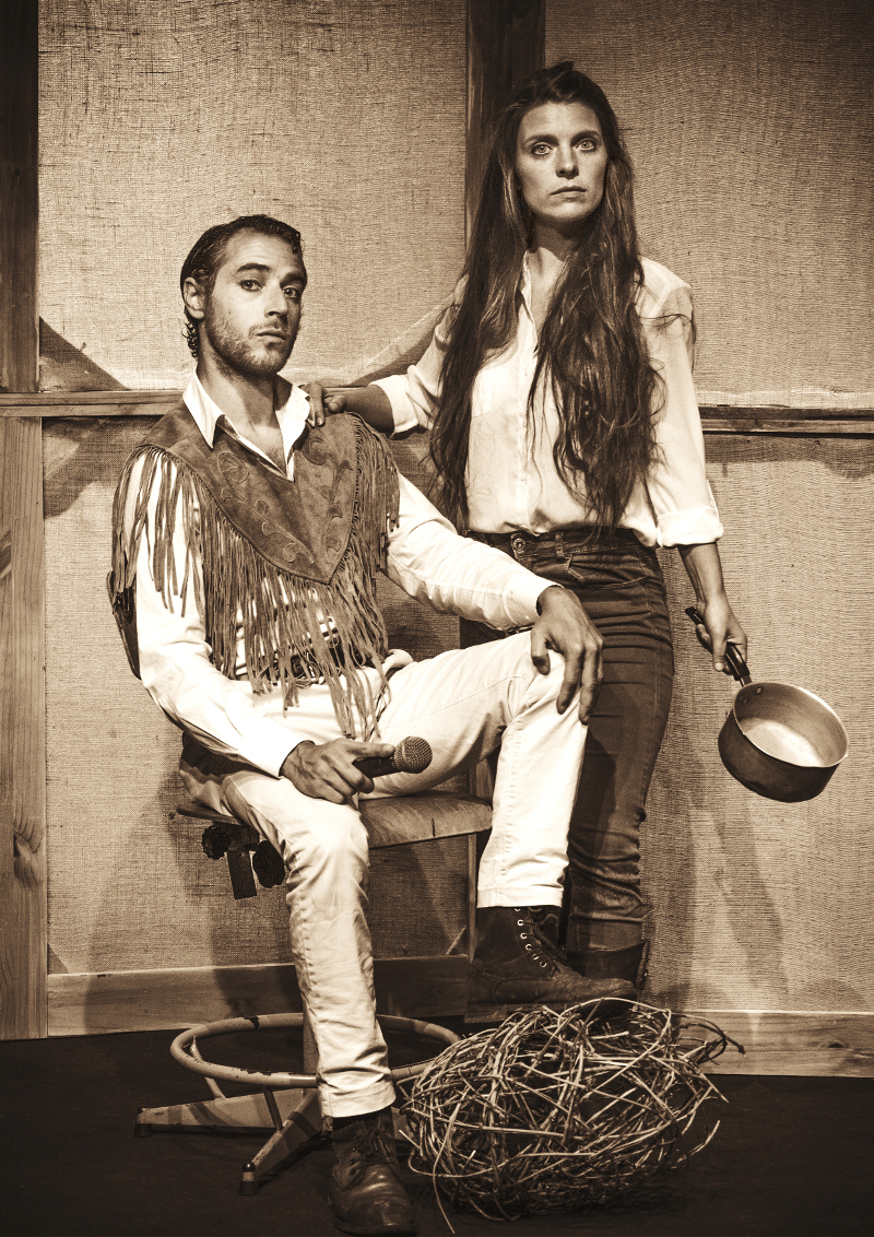 WANTED est un western moderne entièrement mimé et bruité par deux interprètes. Il est la voix, elle est le corps et à eux deux ils jouent tout les personnages du Far West, du shérif orgueilleux au bandit sanguinaire en passant par le banquier, le prisonnier et la femme fatale. Avec une synchronisation rigoureuse, ils s'amusent des clichés à la façon du cartoon et racontent entre les lignes du western une autre histoire, la leur, un peu absurde et un brin tragique.
