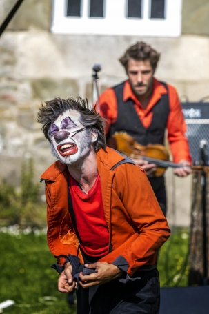 Un clown acrobate au mât chinois et aux questions existentielles.Un musicien à l'univers sonore bien trempé.