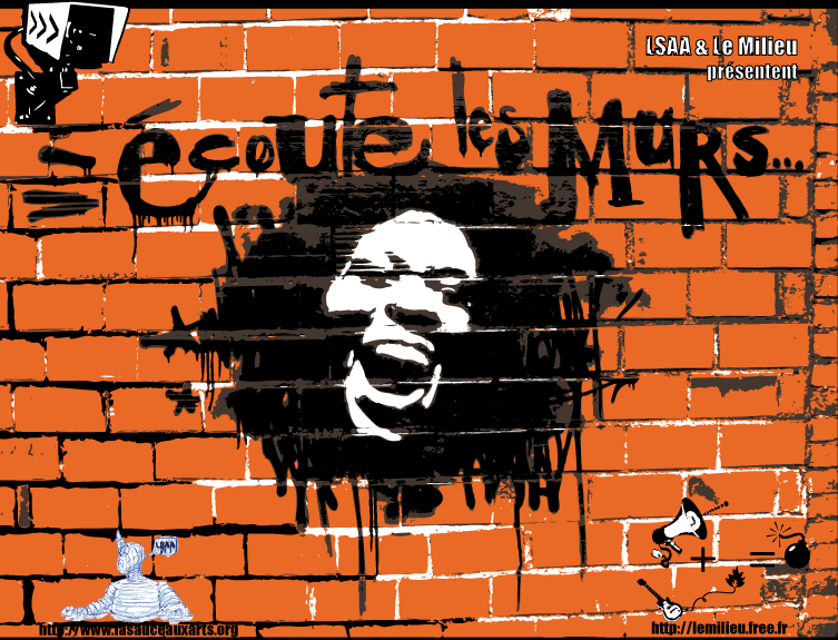 Ecoute les murs... est né de la volonté d’artistes provenant d’horizons divers et variés, notamment de disciplines liées à la culture Hip Hop (Graffiti, Dj, Slam) de se rencontrer et de créer des passerelles entre leurs différents arts. Dans ce spectacle, les interactions entre vidéo, peinture en direct, collage de photos grand format, l’ambiance sonore créée par les musiciens, ainsi que les textes de slam, ouvrent de nombreuses portes créatives.Le dialogue entre toutes ces disciplines aboutit à une mise en scène originale où réel et virtuel se mêlent sans cesse.