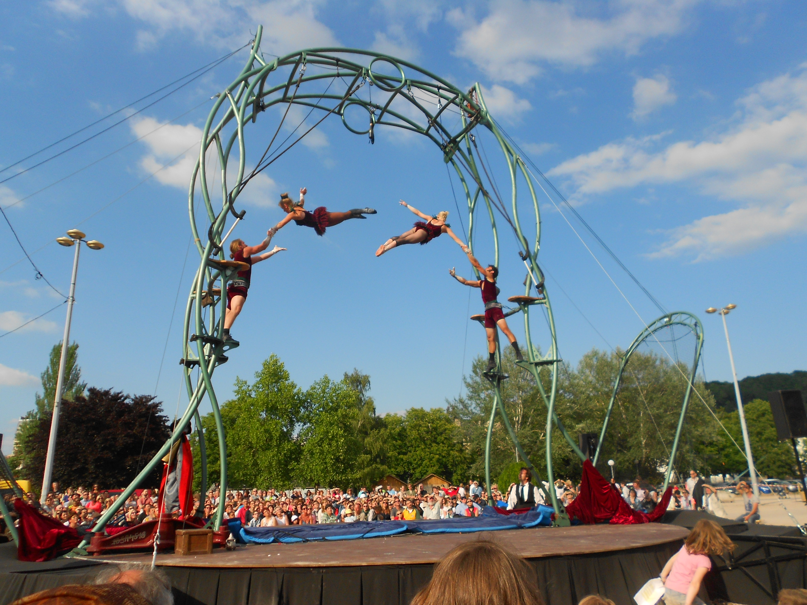 Les cinq artistes sont là pour vous divertir. Deux cadres coréens et deux trapèzes ballants vous laisseront cois. Les équilibristes feront chavirer vos coeurs. Le spectacle va bientôt commencer…