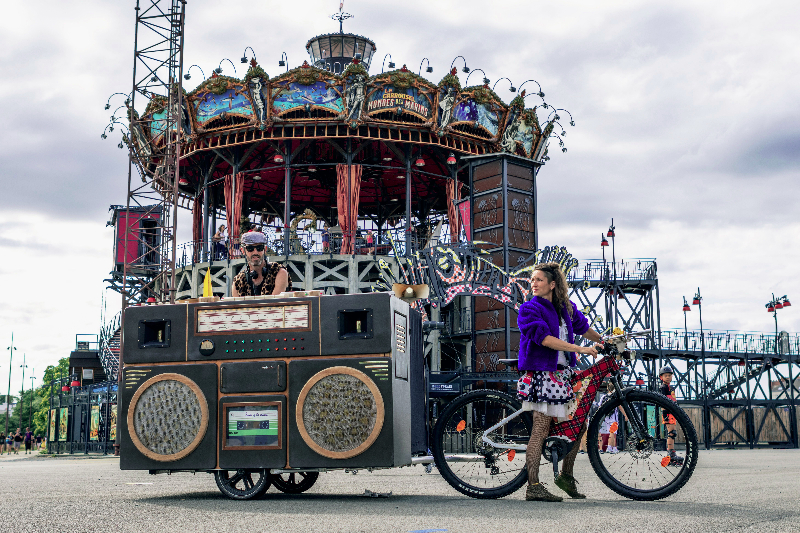 Le CycloBlaster est une radio géante mobile conçu par la team SuperPhonique. Inspiré du design du Ghetto-Blaster (radio portative des 80s) et des postes TSF vintage des années 50, la structure accueille un système son et lumière autonome ainsi qu’un Dj pour vos prestations de déambulation. Nous adaptons la prestation à vos besoins : festivals, déambulations urbaines, salons, manifestations publiques et sportives, défilés…